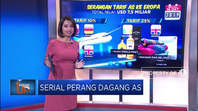 Jakarta, CNBC Indonesia - Usai China, terbitlah Uni Eropa. Belum selesai urusan perang dagang dengan China, AS saat ini terancam memberlakukan perang dagang dengan Uni Eropa. Seperti apa kisahnya? Exist in exist akan mengulasnya selengkapnya dalam program Evening Up di CNBC Indonesia (Senin, 07/10/2019).
