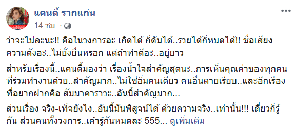 ‘ว่าจะไม่ละนะ!!’ แคนดี้ รากแก่น ออกตัวไว้อย่างน้้นในเฟซบุ๊ก แคนดี้ รากแก่น ของเธอ