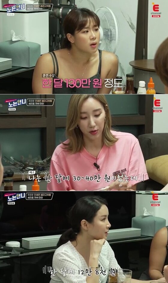 이에 한유미는 "하루에 5000원이었잖아. 그러다가 2만 원으로 올랐다"고 말했다. 5000원이었다는 말에 화들짝 놀란 정유인은 "나는 5만원일 때 들어갔었다"고 말했고, 한유미는 "진짜 좋을 때 들어갔다"라며 부러움을 표했다.
