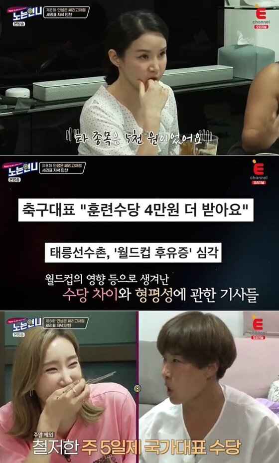 한유미는 이어 "대한체육회에서 분배하는 수당은 동일하지만 각 종목 협회에서 추가로 수당을 지급했다. 근데 축구협회는 돈이 많으니까 그렇게 줬던 것"이라고 설명했다.