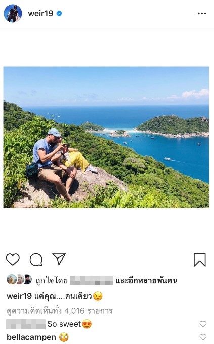 ห่างหายจากทริปไปพักใหญ่จากสถานการณ์โควิด-19 ซึ่งพอสถานการณ์ดีขึ้น คู่หวาน เวียร์ ศุกลวัฒน์ คณารส ก็พาหวานใจ เบลล่า ราณี แคมเปน ออกตระเวนเที่ยวทันที การนี้แม้ว่าจะต้องบุกป่าผ่าดง แต่กระนั้นเรื่องความสวีทบอกเลยว่าหายห่วง อย่างล่าสุดหนุ่มเวียร์ ก็ได้โพสต์ภาพคู่ พร้อมวิวสวย กับแคปชั่นหวานๆ ว่า
